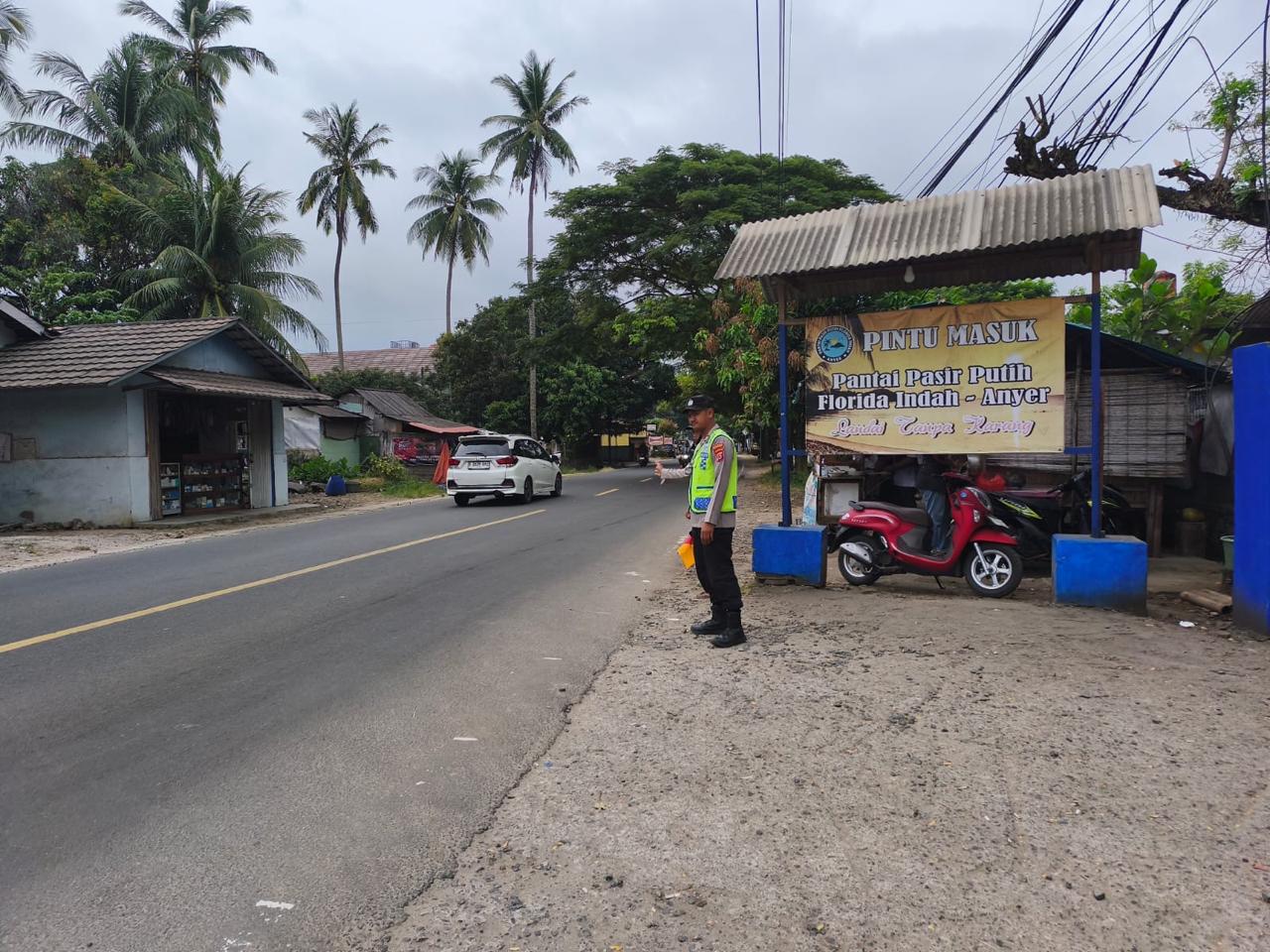 *Polres Cilegon* - Guna Kelancaran Arus Lalu-Lalu-lintas Jalur Wisata Yang ada di daerah hukum Polsek Cinangka Polres Cilegon Polda Banten,Para Wisatawan menuju Pantai Cinangka, Personil Polsek Cinangka Polres Cilegon Polda Banten Laksanakan Pengaturan Lalu-lintas Wisata, Kamis (26/03/2026).