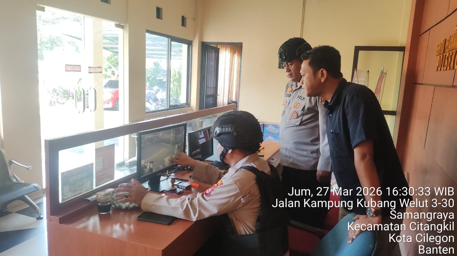 Kapolres Cilegon Polda Banten AKBP Dr. Martua Raja Taripar Laut Silitonga yang diwakili oleh Kapolsek Ciwandan Polres Cilegon Polda Banten KOMPOL Achri Dwi Yunito menerangkan bahwa sebagai langkah dalam mencegah timbulnya potensi gangguan dari luar terhadap keamanan kantor maupun keselamatan personel piket jaga, selalu memerintahkan kepada personel yang melaksanakan piket jaga Mako agar sewaktu-waktu menggelar kegiatan Sispam Mako.