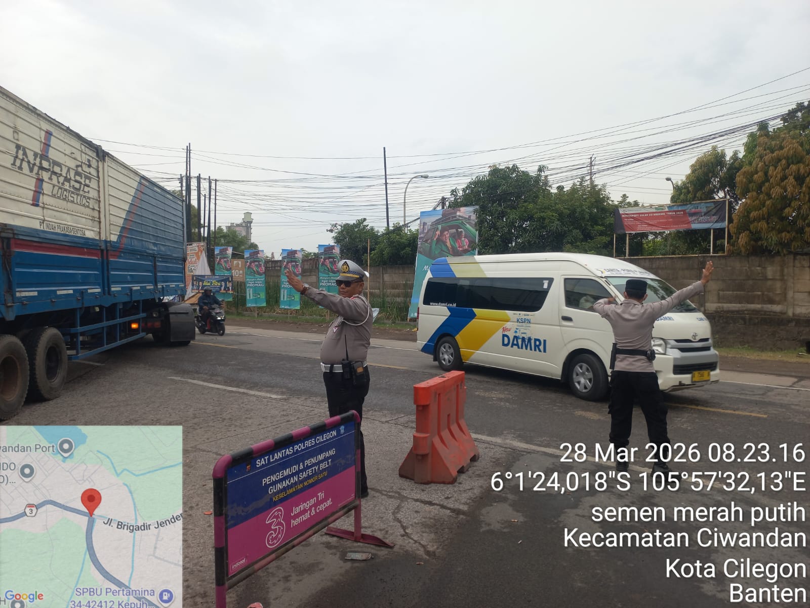 Cilegon - Polsek Ciwandan melaksanakan Kegiatan Rutin Yang Ditingkatkan (KRYD) dan monitoring jalur wisata di depan Pos Lantas JLS Ciwandan. Kegiatan ini bertujuan untuk membantu kelancaran arus lalu lintas dan memberikan pelayanan kepada masyarakat guna menciptakan keamanan dan ketertiban lalu lintas, Sabtu (28/03/2026).
