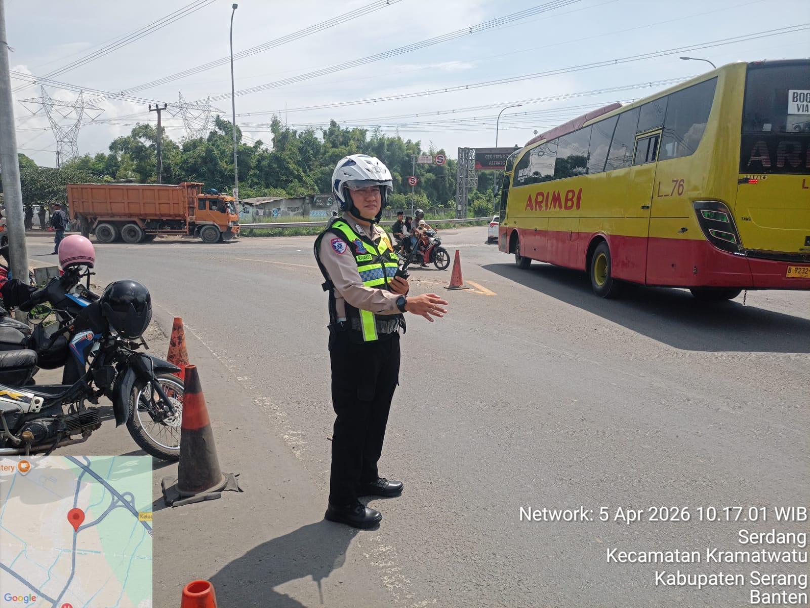 Cilegon – Polres Cilegon Polda Banten, Dalam Mewujudkan Aksi Nyata Pelayanan Kepada Masyarakat, Personil Satlantas Polres Cilegon Polda Banten Laksanakan PECAK (Pergelaran Cepat Anggota Kepolisian) Pengaturan Lalu lintas di wilayah perkotaaan terutama di titik rawan kemacetan dan kecelakaan lalu lintas, Minggu (05/04/2026).