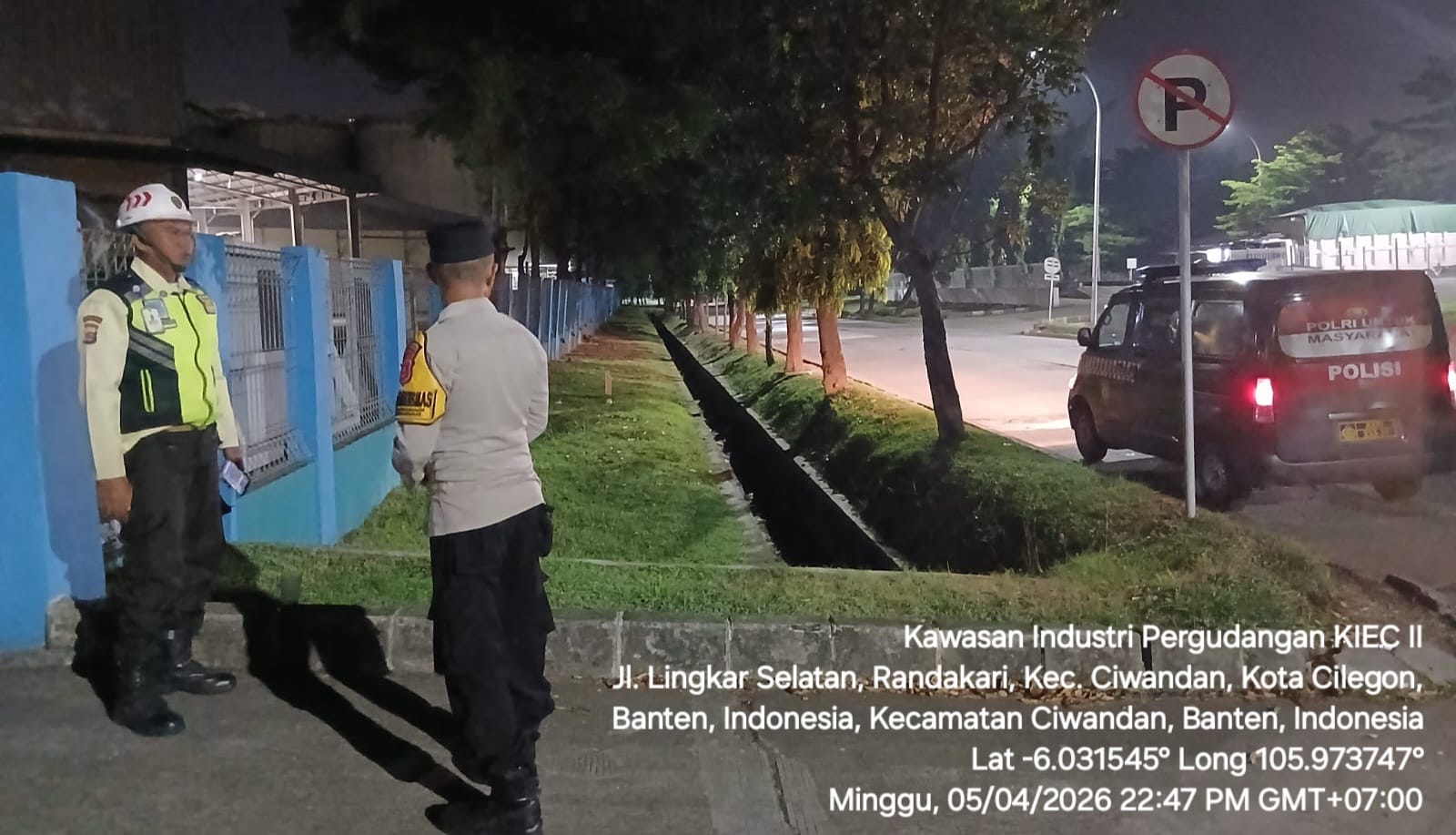 Kapolres Cilegon Polda Banten AKBP Dr. Martua Raja Taripar Laut Silitonga Melalui Kapolsek Ciwandan Polres Cilegon Polda Banten KOMPOL Achri Dwi Yunito Mengatakan Pada kesempatan tersebut, Personil Polsek Ciwandan melaksanakan sambang Dan Patroli dialogis dengan memberikan imbauan kepada petugas security perusahaan agar meningkatkan kewaspadaan terhadap situasi di sekitar perusahaan.