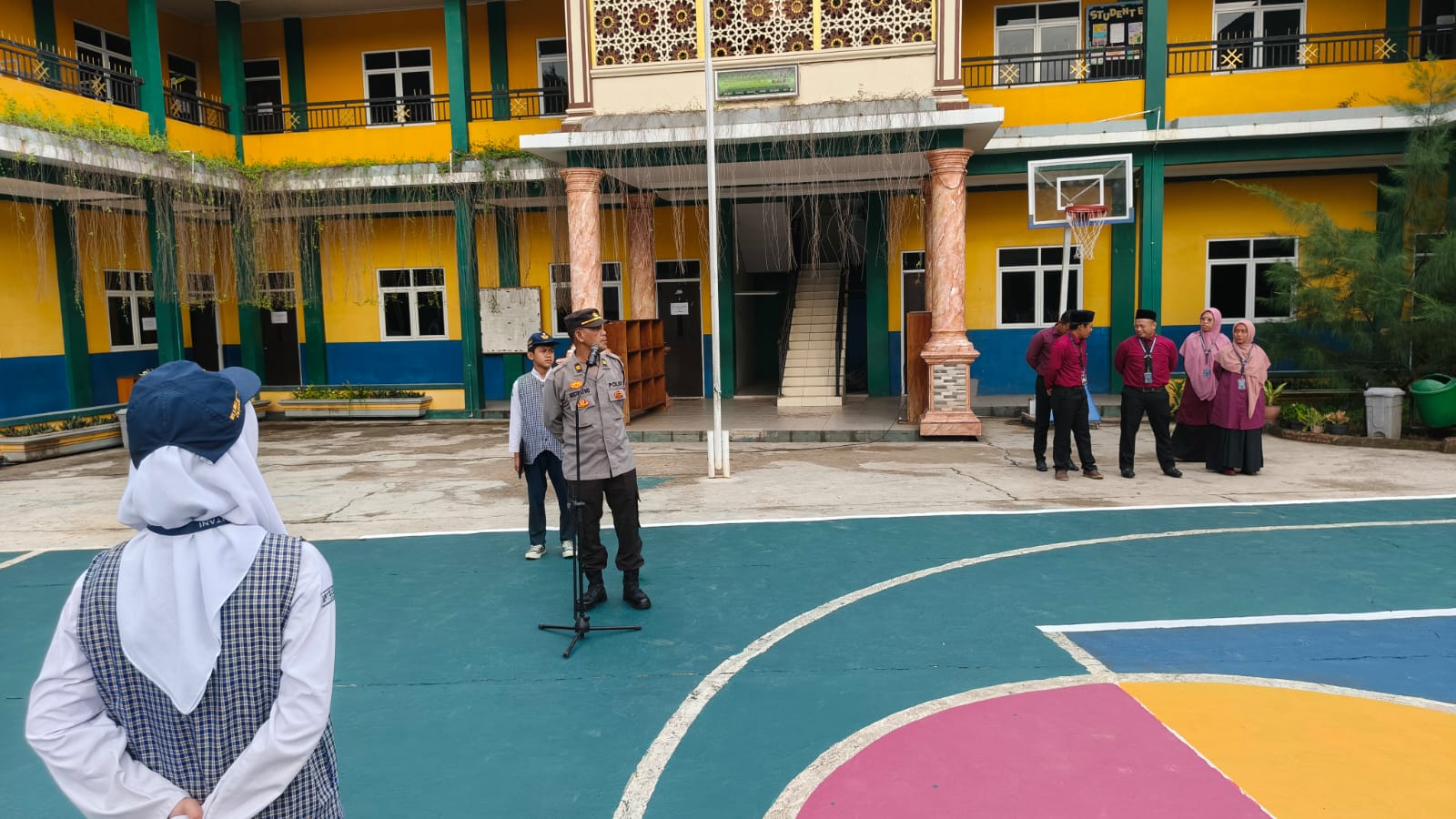 Cilegon - Unit Binmas Polsek Ciwandan melaksanakan Program Polisi Peduli Pendidikan dalam rangka Pelaksanaan Commander Wish Kapolda Banten di SMP IT Mumtaz Al Bantani, Kelurahan Samangraya, Kecamatan Citangkil, Kota Cilegon, pada Senin (06/04/2026).