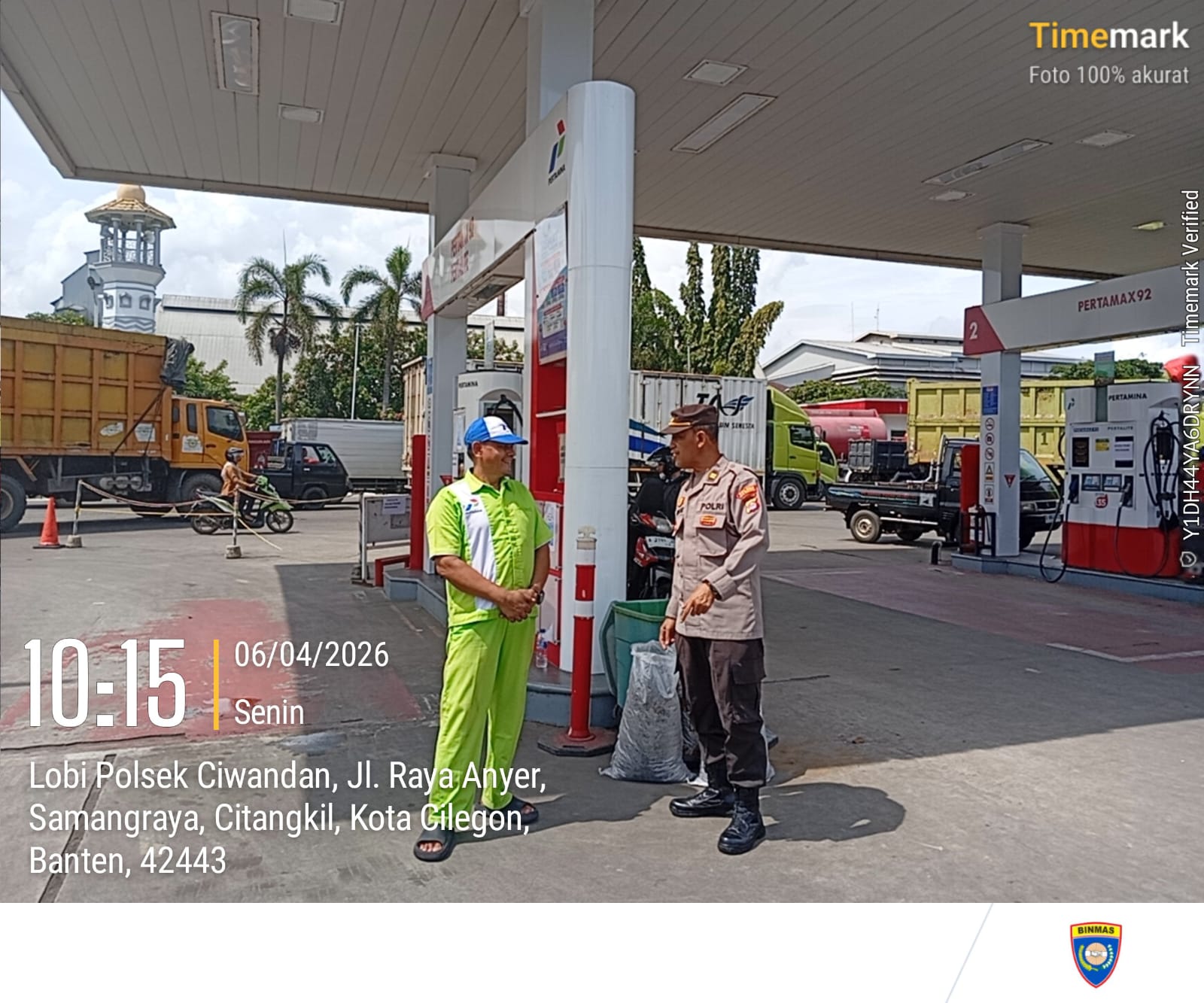 Pukul 21.00 WIB, personel piket Polsek Ciwandan yang dipimpin oleh Aiptu Yudi Setiawan dan Brigpol Muhamad Sofyan Iskandar, melakukan monitoring stok BBM di tiga SPBU di wilayah Ciwandan, yaitu SPBU 34.424.11 Kerenceng-Warnasari, SPBU 34.424.03 Cigading-Tegal Ratu, dan SPBU 34.424.12 Cilurah (JLS) - Kepuh.