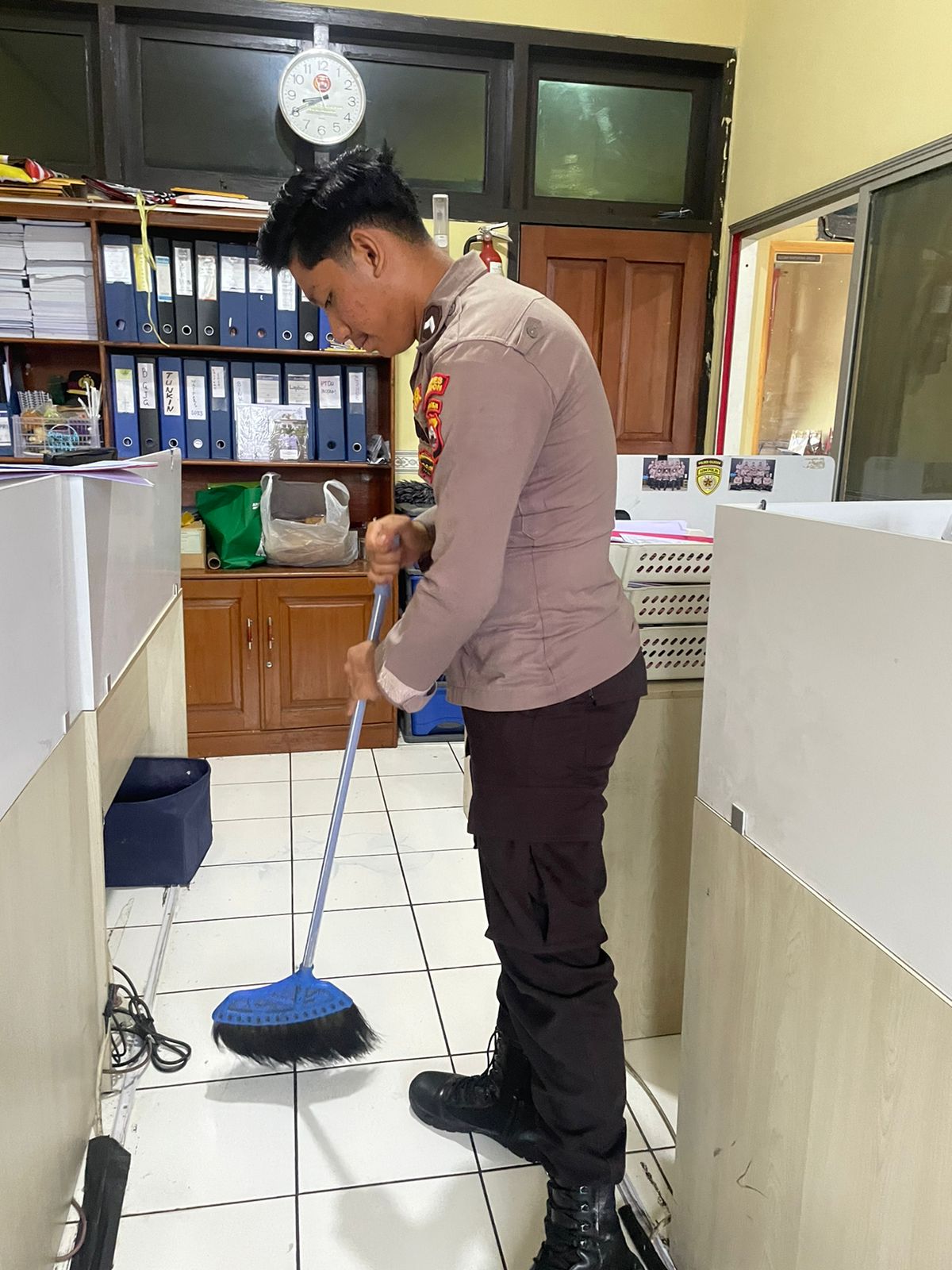 anggota SDM Polres Cilegon selalu menjaga kebersian ruangan kerrja setiap saat.