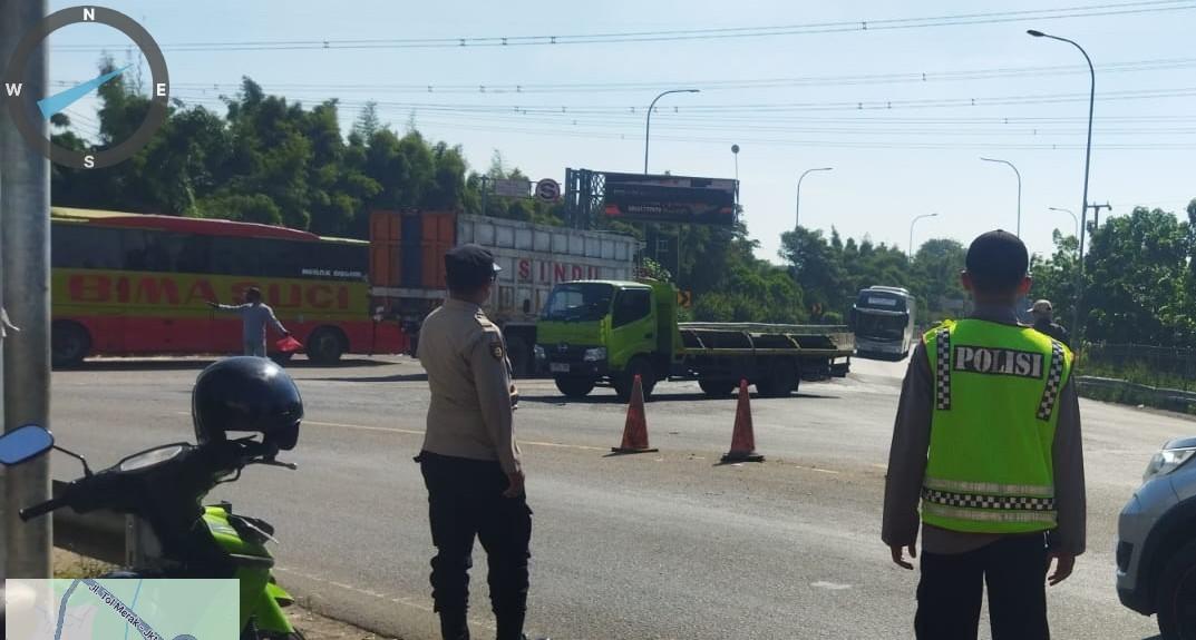 Selain melakukan pengawasan terhadap truk-truk nakal yang melanggar jam operasional, personel di lapangan juga melakukan pengaturan arus lalu lintas untuk mengurai potensi kemacetan.