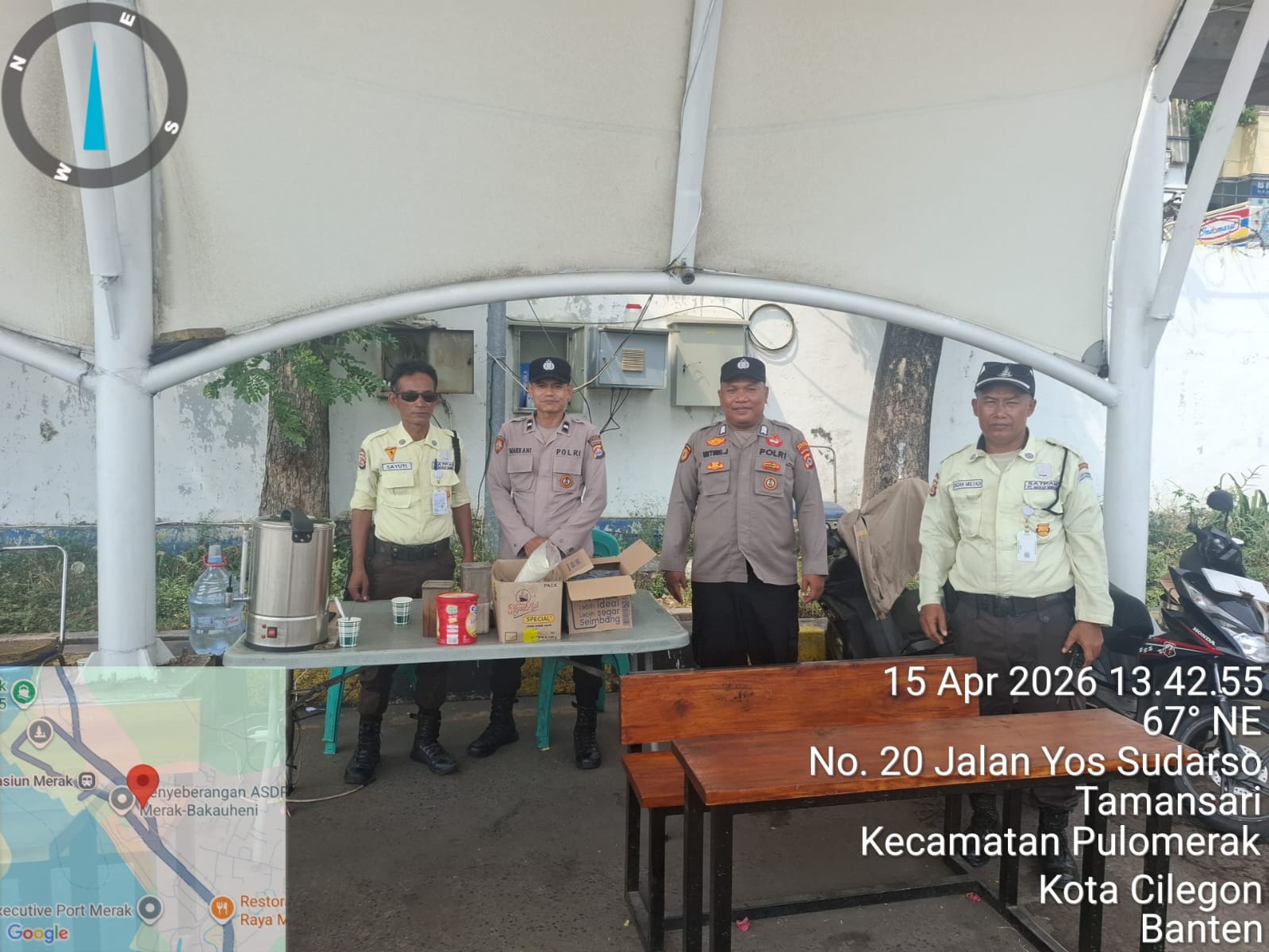 Cilegon - Personel Polsek Kskp Merak Polres Cilegon Polda Banten melaksanakan sambang dan patroli kawasan pelabuhan merak dalam rangka menjaga Harkamtibmas di Kawasan Pelabuhan Merak, Rabu (15/04/2026).