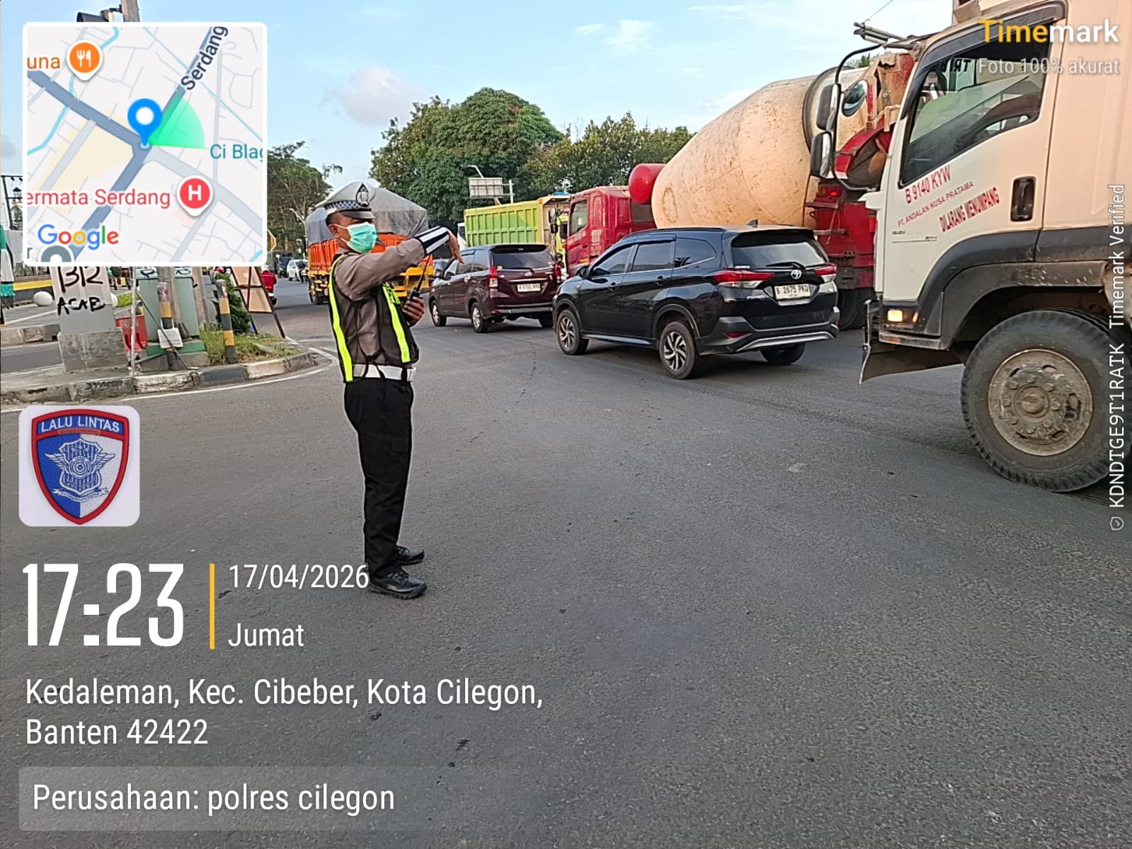 Cilegon, Satlantas Polres Cilegon Polda Banten – Berikan pelayanan kepada masyarakat Kasat lantas Polres Cilegon AKP Ridwan memerintahkan jajaran lalulintas untuk melaksanakan pengaturan lalu lintas di penggal – penggal jalan yang rawan kemacetan di Kota Cilegon, (Jumat,17/4/2026)