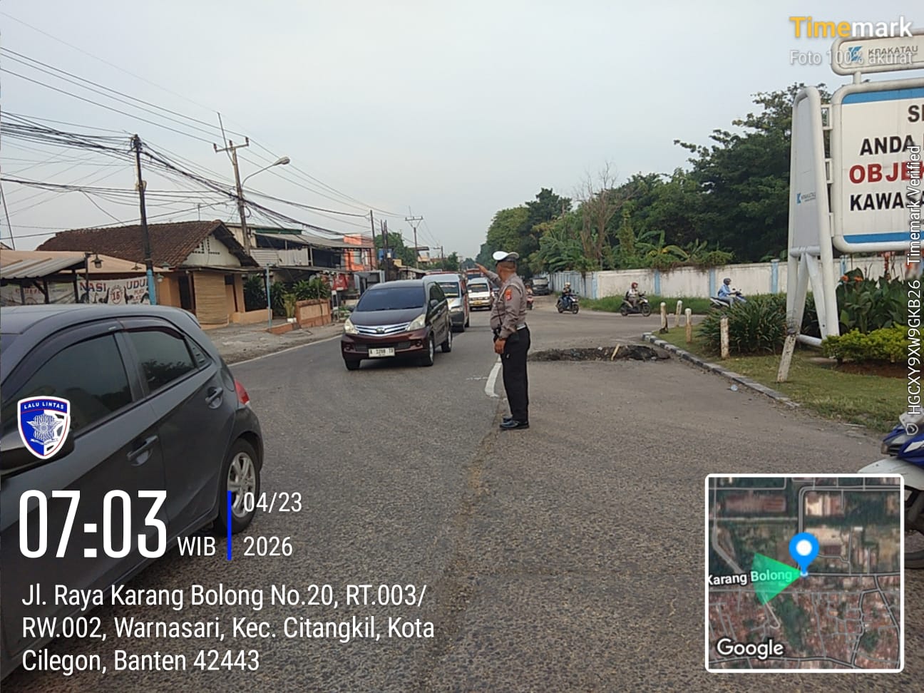 Cilegon - Pelayanan Prima Kepolisian Kepada Warga Masyarakat dan Guna menciptakan situasi lalu lintas yang aman, tertib dan lancar, Personel Unit Lantas Polsek Ciwandan Polres Cilegon Polda Banten secara rutin melaksanakan pengaturan lalu lintas, Rabu (22/04/2026).