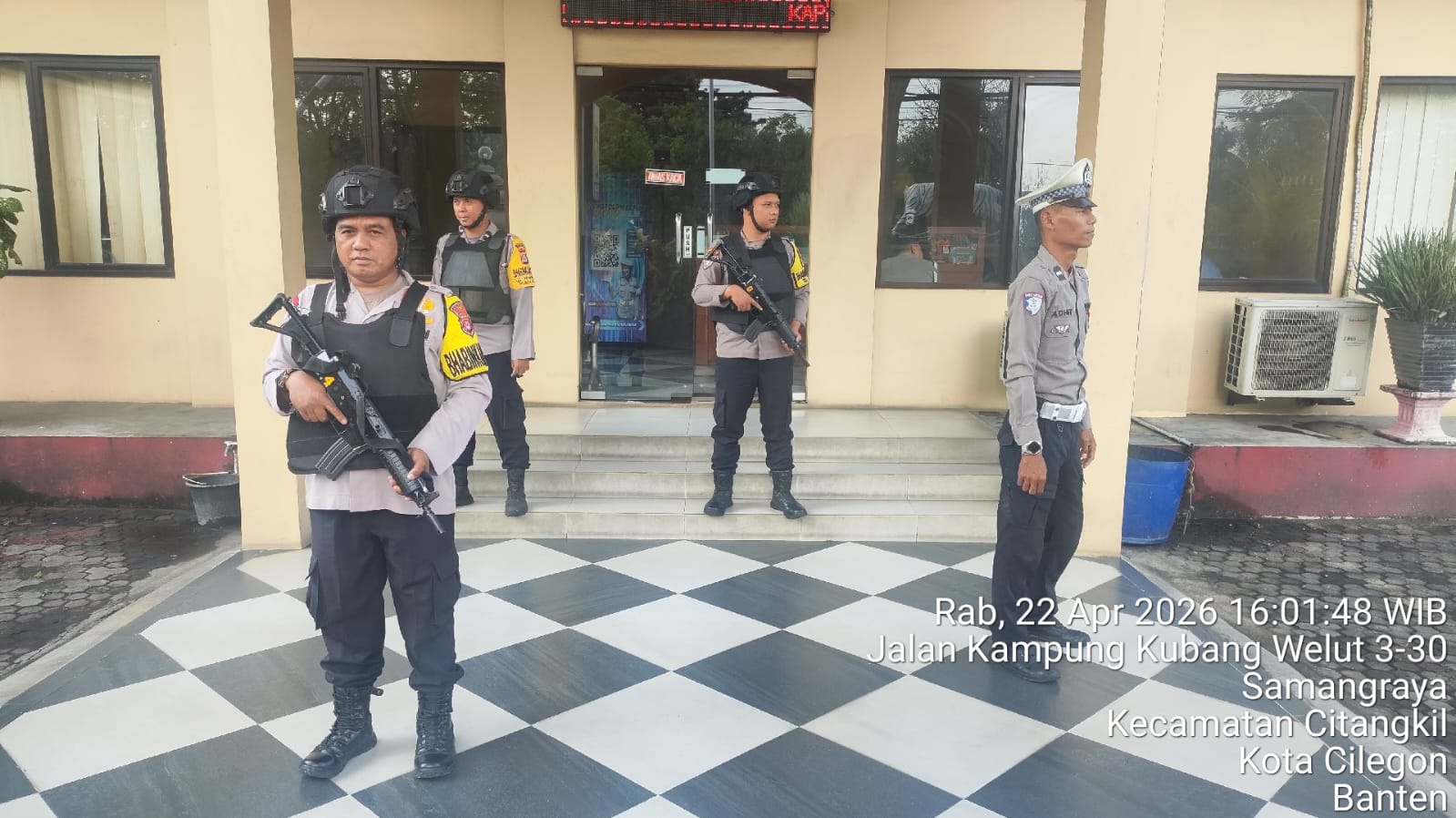 Cilegon - Dalam Kesiap Siagaan dan Memperketat Penjagaan Mako (Markas Komando), Personil Polsek Ciwandan Polres Cilegon Polda Banten melaksanakan Sistem Pengamanan Markas Komando (Sispam Mako), Rabu (22/04/2026).