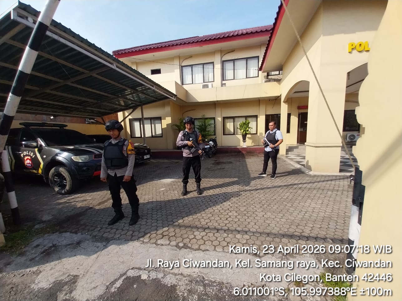 Cilegon - Dalam Kesiap Siagaan dan Memperketat Penjagaan Mako (Markas Komando), Personil Polsek Ciwandan Polres Cilegon Polda Banten melaksanakan Sistem Pengamanan Markas Komando (Sispam Mako), Rabu (22/04/2026).