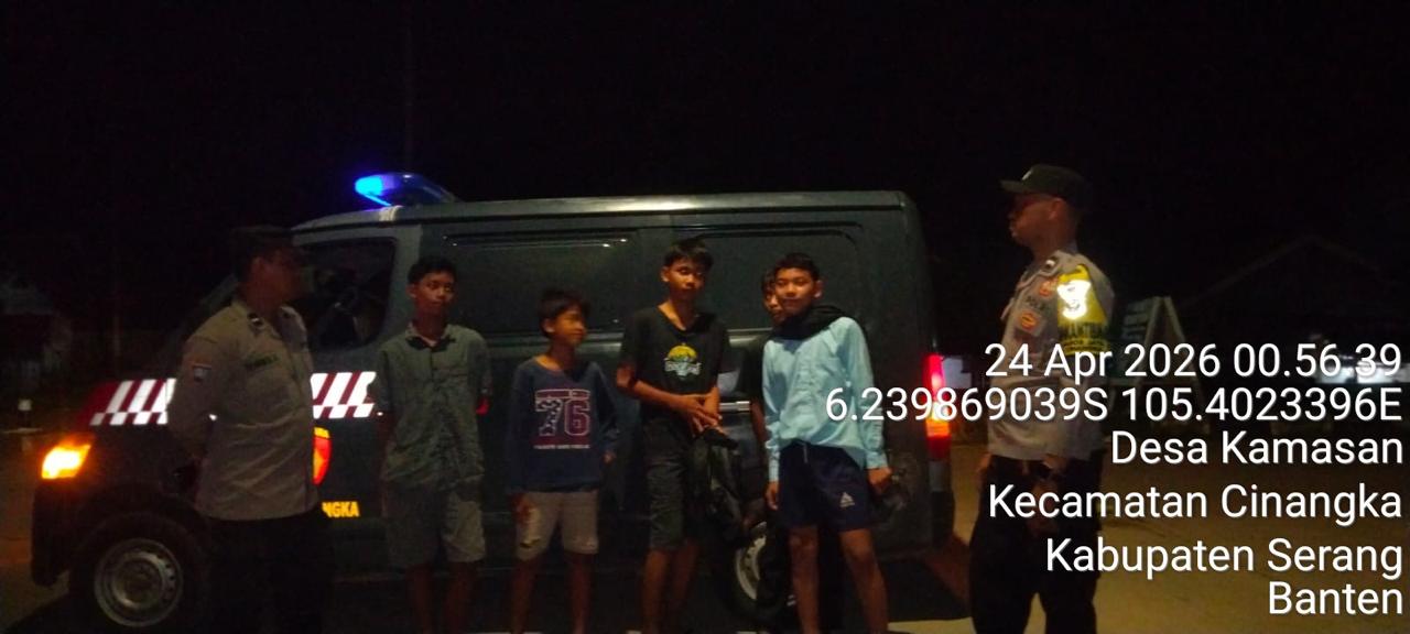*Cilegon* – Dalam Rangka Pencegahan Kejahatan Jalanan dan Memelihara situasi keamanan dan menjaga serta memberikan rasa aman dan nyaman di masyarakat,Salah satu upaya untuk mewujudkan hal tersebut sebagaimana yang dilakukan oleh Personil Polsek Cinangka Polres Cilegon Polda Banten melaksanakan giat patroli blue light malam hari hingga menjelang pagi, Jumat (24/04/2026).